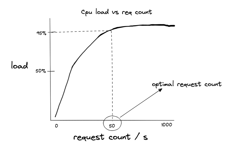 An essential aspect of our optimization model was accurately determining each node's capacity by determining on average how many requests per second a node could reliably handle before performance degradation. We implemented node health checks that periodically reported key statistics about hardware performance. By monitoring specific components (CPU utilization, memory usage, disk I/O, network bandwidth) under varying request loads, we identified saturation points for each node.
